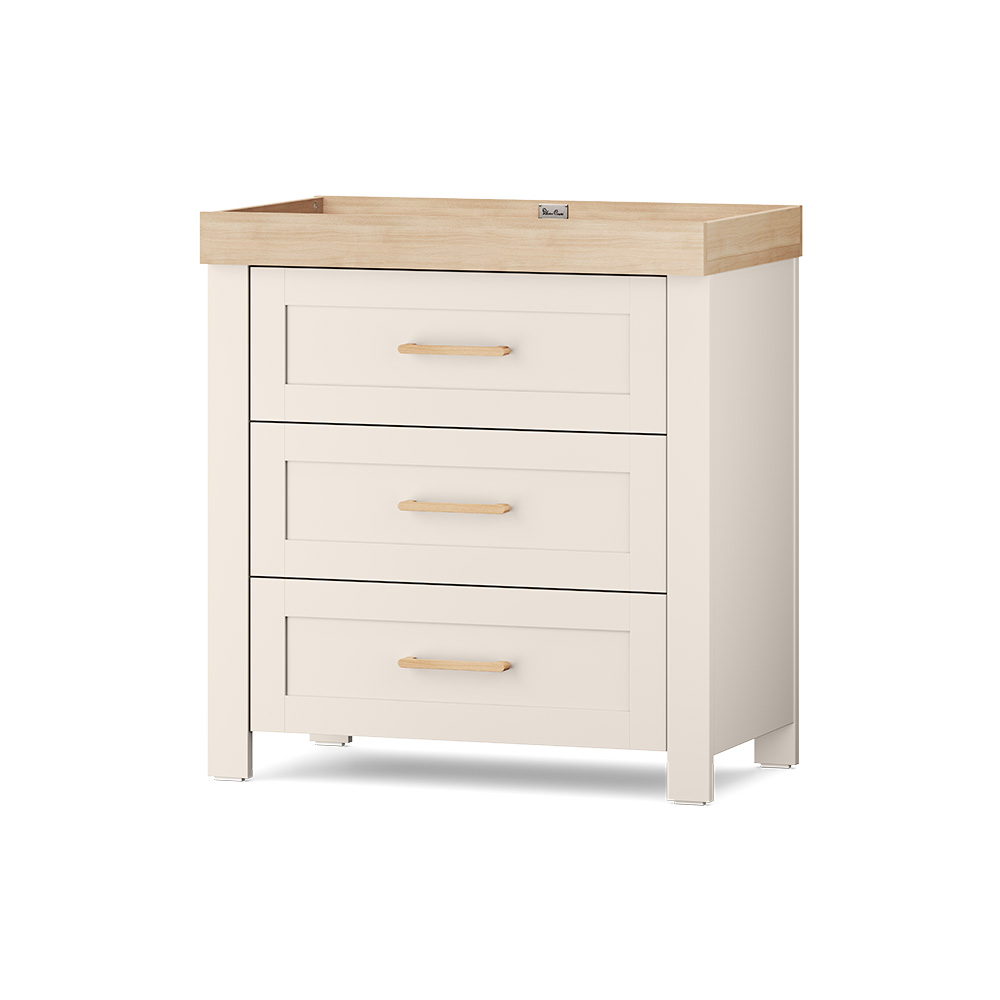 Featuring three deep drawers and a removable changer top, the Seville dresser will keep your baby’s essentials organised, and there’s plenty of hanging space in the Seville wardrobe with twin rails and two shelves. Crafted in a timeless, soft cashmere colour with natural oak accents, the Seville furniture set is a sophisticated addition to any home.