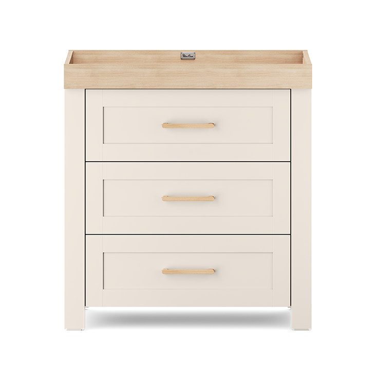 Featuring three deep drawers and a removable changer top, the Seville dresser will keep your baby’s essentials organised, and there’s plenty of hanging space in the Seville wardrobe with twin rails and two shelves. Crafted in a timeless, soft cashmere colour with natural oak accents, the Seville furniture set is a sophisticated addition to any home.