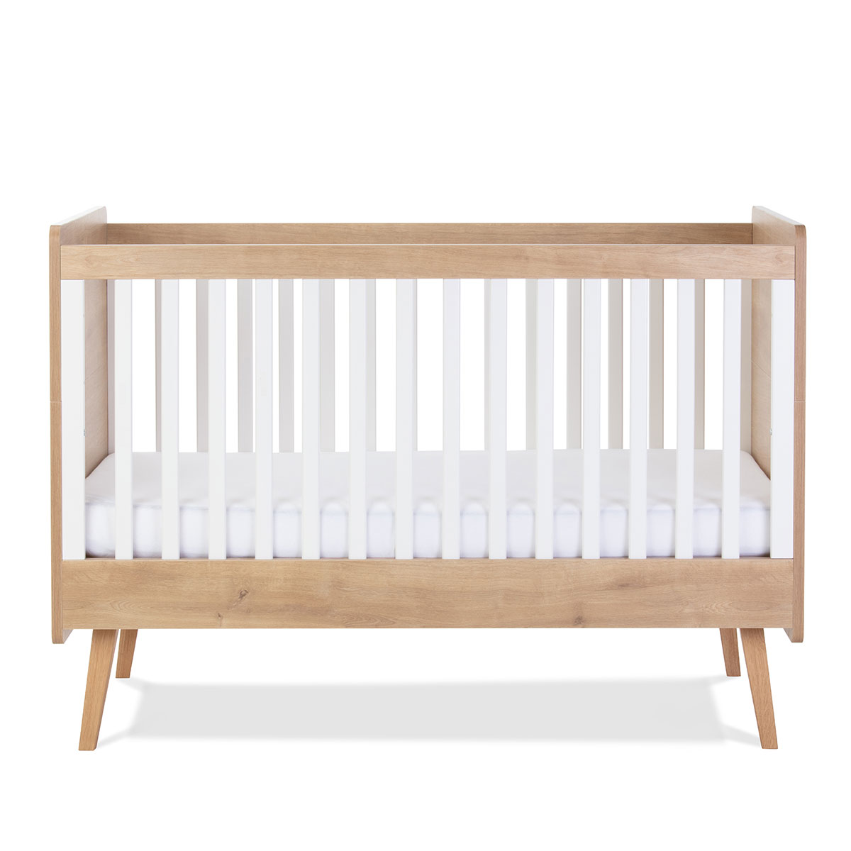 The Westport cot bed will grow with your child from newborn up to approximately 4 years old. With 3 height positions, it can be easily adjusted to suit every stage of your little one’s development. Its stylish white design is complemented by warm oak accents and solid oak feet for a calming and inviting feel.