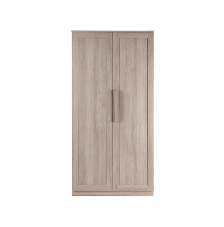 The Bromley Oak wardrobe features twin hanging rails and an overhead shelf for storing baby's essentials. With a warm oak veneer finish and coordinating handles, it's the perfect addition to your nursery.