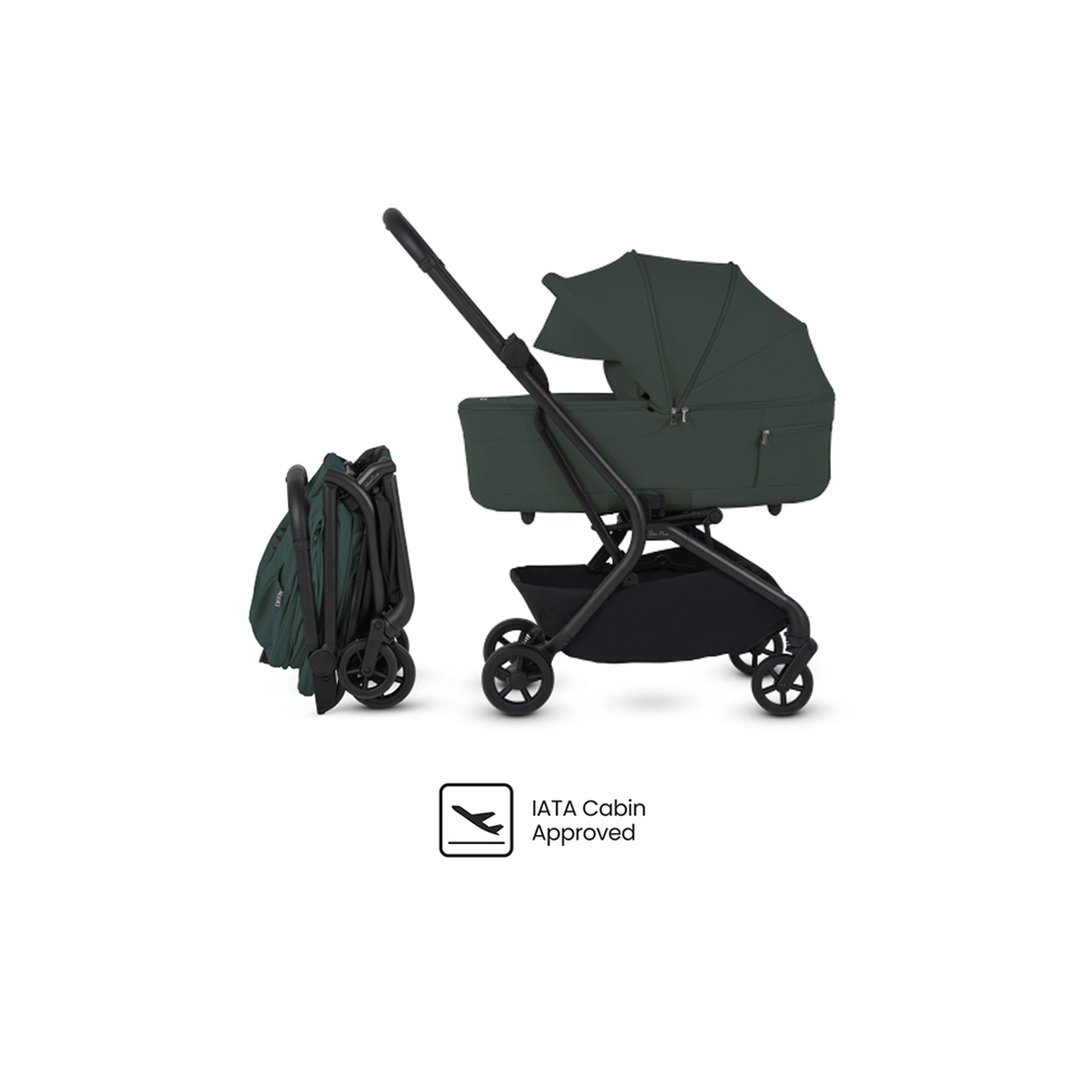 Suitable from birth to 9kg (approx. 6 months), the folding carrycot includes a soft-touch bamboo lining and panoramic ventilation panel for complete newborn comfort.