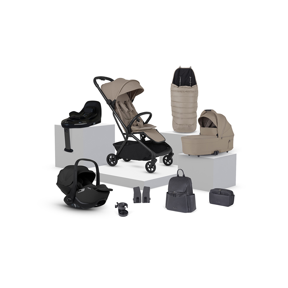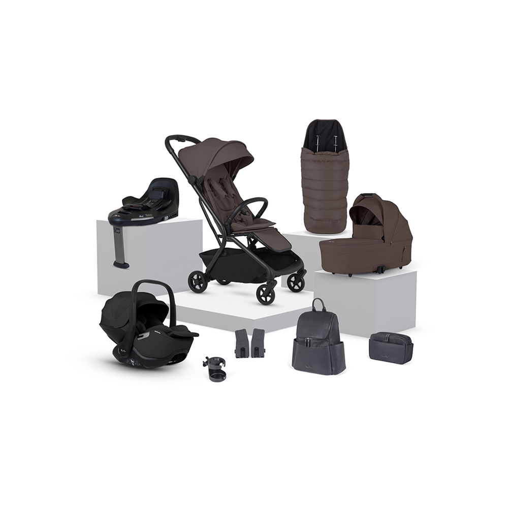 From day one, Nia fits around you. With a folding carrycot, lie-flat stroller seat, car seat compatibility, there are no compromises. Big trip? Quick errand around town? Nia’s your go-to. Whether it’s an overhead luggage compartment, a tiny car boot, or a packed train cabin, our compact stroller fits right in. Style up every stroll with the coordinating accessories included – a spacious changing bag, stylish organiser bag, cosy footmuff and handy cup holder.