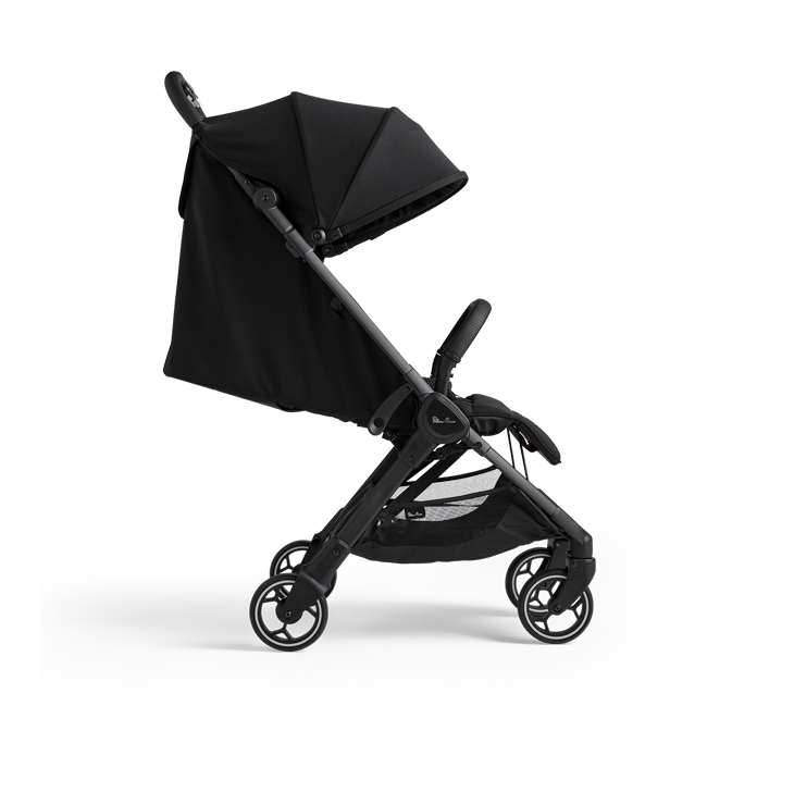 Clic’s soft-cushioned leatherette bumper bar is compatible with the Silver Cross snack tray, while the UPF50+ hood, sun visor and ventilation panel with magnetic fastening keeps them cool on warmer strolls.