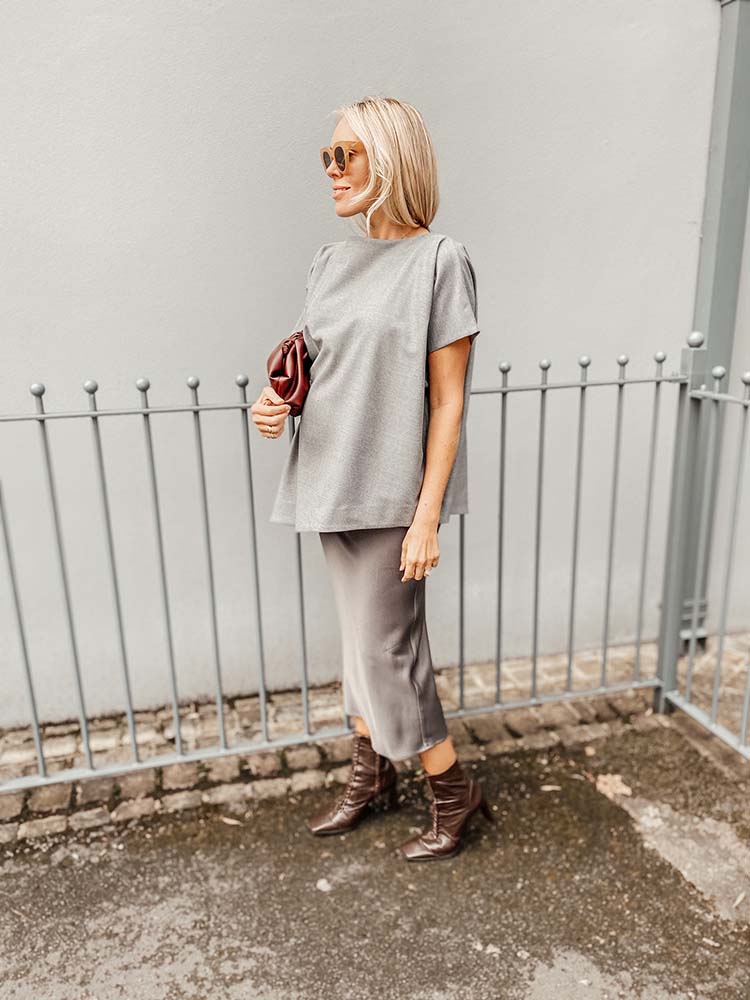 The midi has always been my go-to length skirt and so being able to continue to incorporate it into my maternity wardrobe meant I was able to embrace my sense of style and enjoy my favored items still. It’s all about looking at already-owned pieces and wearing them in a different way.