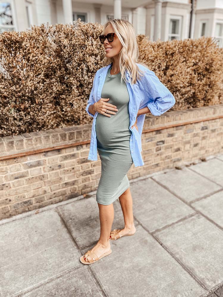 Layering has always played a big part in my wardrobe, but it took centre stage during pregnancy. If you like to show off your bump in a subtle way, then adding a shirt and a blazer on top of a t-shirt dress is a great way to add depth and interest to a maternity outfit.
