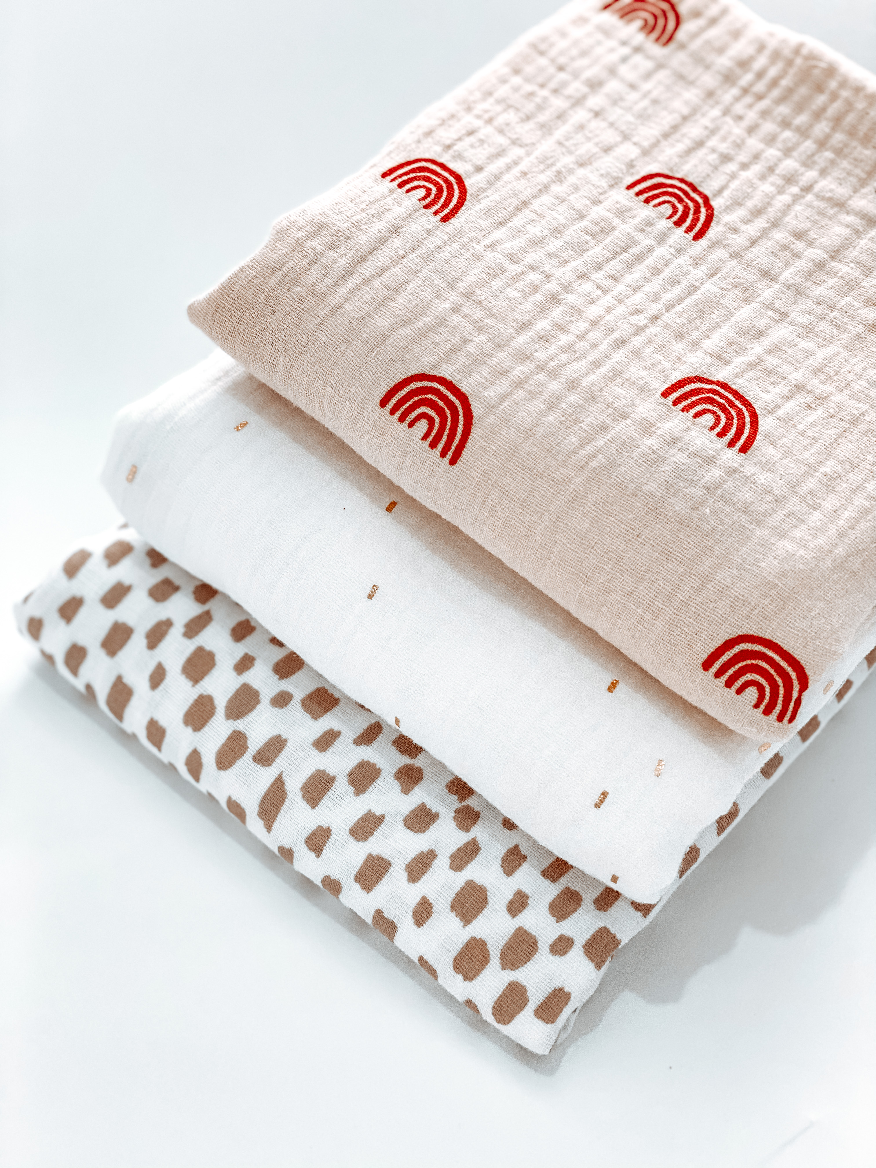 Both of my girls have always used muslins as comforters and I absolutely love fashion, clothes and accessories! I always make sure my girls are little fashionistas too! So, when I found some muslin fabric, I got that light bulb moment and realised I could make them to complement their clothes, creating something that was not only practical but beautiful too! I had little sewing experience and so I watched a YouTube video on how to sew a muslin. The rest is history...