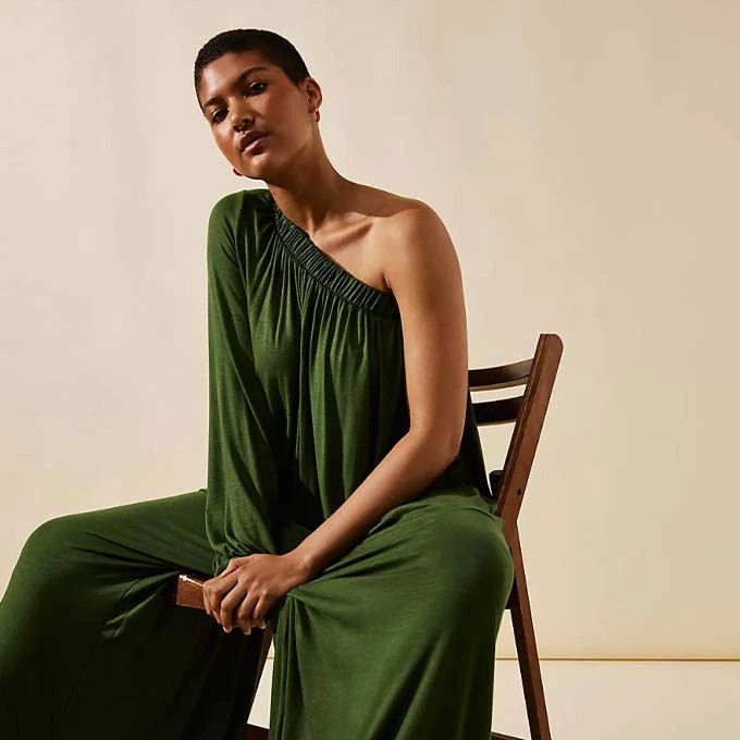 If dresses aren’t your thing, you’ll love this gorgeous pull-on jumpsuit from Free People. The soft, textured jumpsuit features a one-shoulder sleeve and dramatic wide legs for the perfect silhouette.
