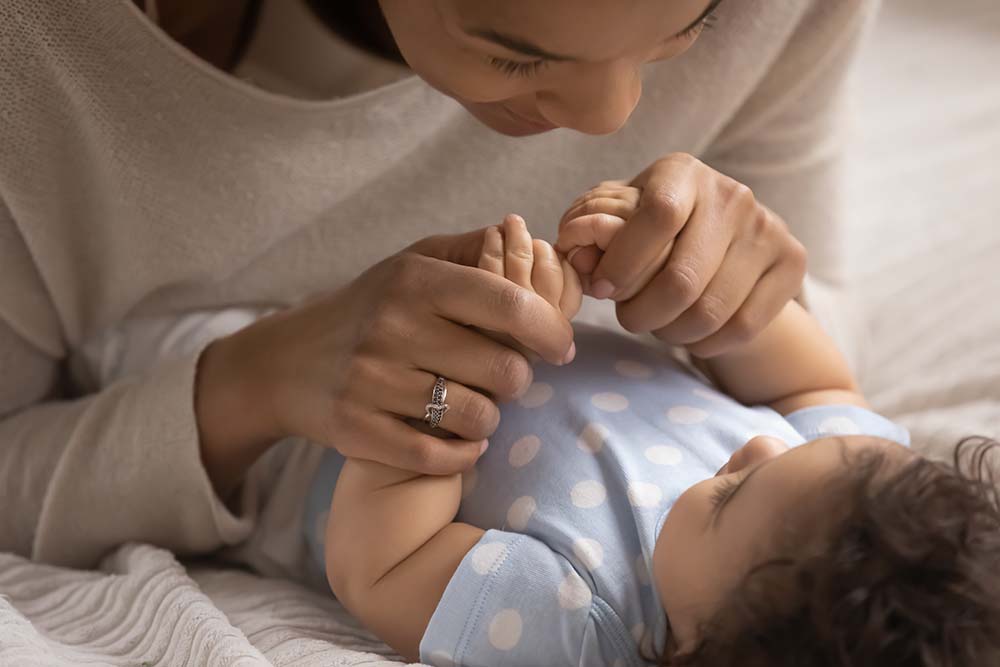 Despite the irregular sleeping patterns, you can start to teach your baby the difference between night and day early on. This is an essential skill for them to learn as you start to introduce a more scheduled routine as they get older. Things like feeding your baby their first feed of the day in a room with as much natural light as possible is just one of the tips to help them start to recognise day from night early on.