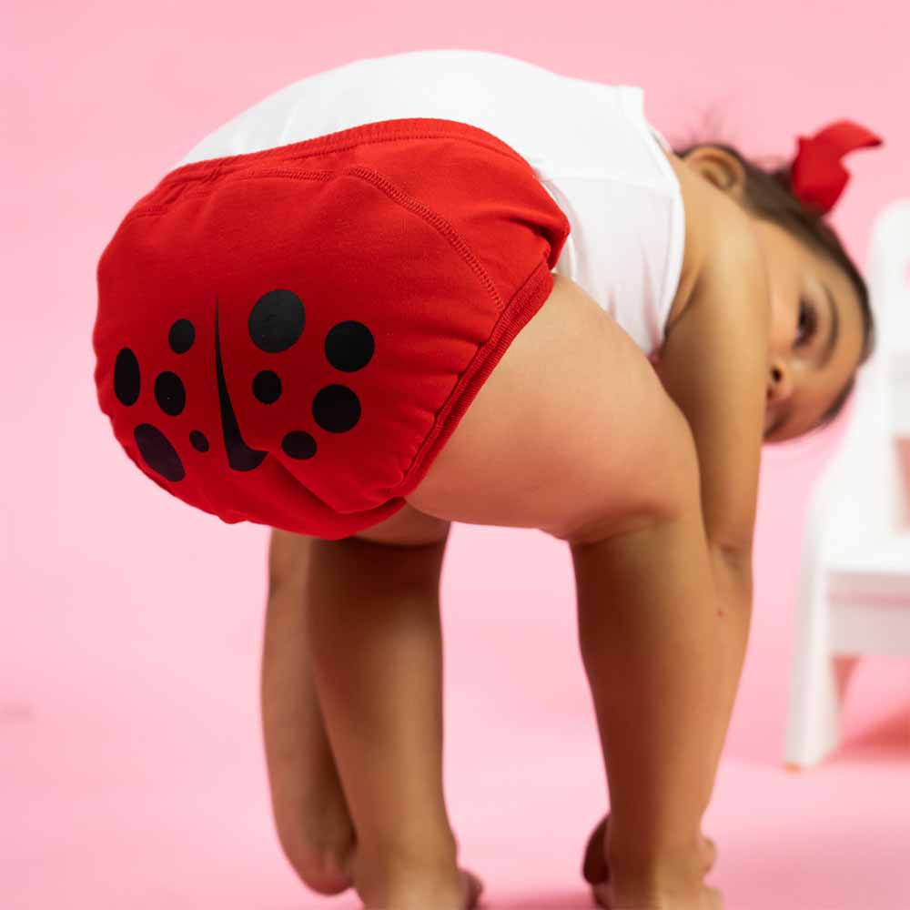 • Longer periods with dry nappies/pull-ups indicate your toddler’s bladder has developed stronger muscles which will lead to fewer accidents.
