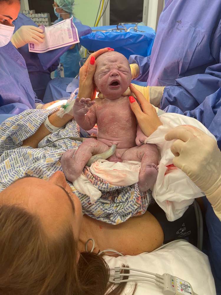 Since I felt like I had failed at being pregnant, I really wanted to be able to have a natural birth and succeed. Having a natural section, I was able to pull the baby out of my tummy myself and put him on my chest for immediate skin to skin contact. I am so grateful for this, as it was really empowering to be able to deliver my own baby and feel in control of my birth – something I had never felt during pregnancy.