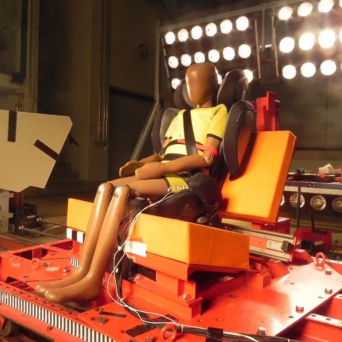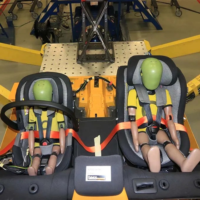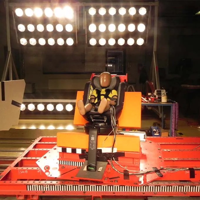 The Swedish Plus Test is based on Sweden’s original car seat regulation, the ‘T Test’, which was swapped for EU regulations when Sweden joined the European Union. The T Test then became the Plus Test and has a primary focus on the child’s neck loads. Only rear facing toddler car seats can be tested.